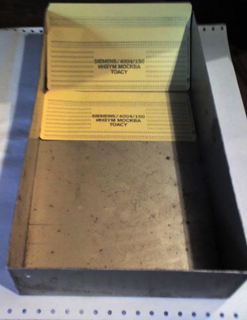 О мои «трудовых успехах» рассказ долгий, а пока - один эпизод... В том далёком 1982 году (когда самая лучшая страна на свете – СССР была окружена кольцом врагов, «изготовившихся к нападению») случилось мне писать программку для «спецвычислителя» (это такой маленький компьютер, который с неким сильно секретным «изделием» летит и им рулит) Написал. Пришла пора сдавать в секретную часть - на «вечное хранение». Исходники - на перфоленте (магнитную ленту тогда «в нашем колхозе» как-бы еще не изобрели..) Приношу. Говорят – «ни-и-изя»! Почему, спрашиваю? А потому что «читалка» перфоленточная FS-1500 производится в Чехословакии... Я говорю - они же наши друзья, мы все - соцлагерь (только бараки - разные!)